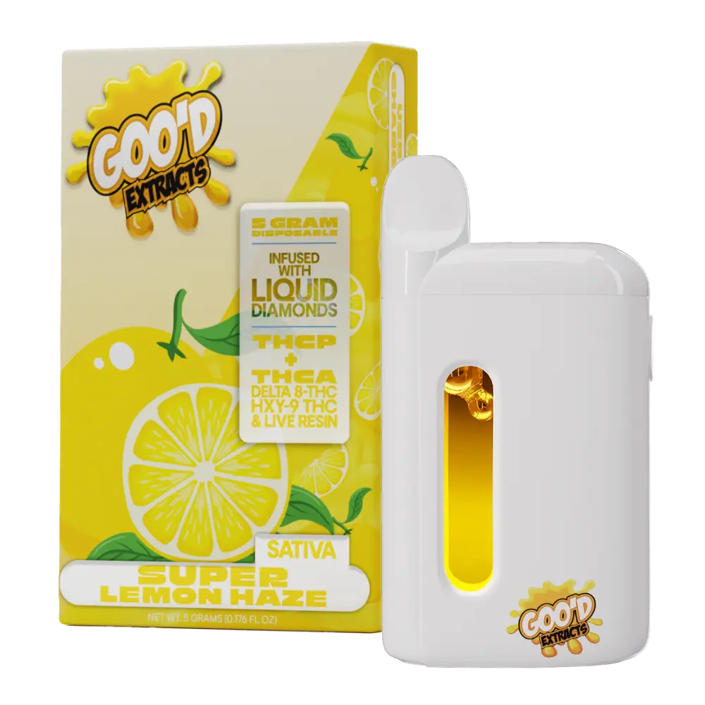 Super Lemon Haze is a vibrant 5 gram disposable that delivers a zesty burst of lemony freshness, intricately combined with the invigorating touch of a hazy, aromatic undertone, and enriched by a blend of THCP, THCA, Delta 8-THC, HXY-9 THC, and Live Resin. This exhilarating flavor profile captures the essence of sun-ripened lemons and the exhilarating zest of a morning haze, offering a refreshing and uplifting experience.